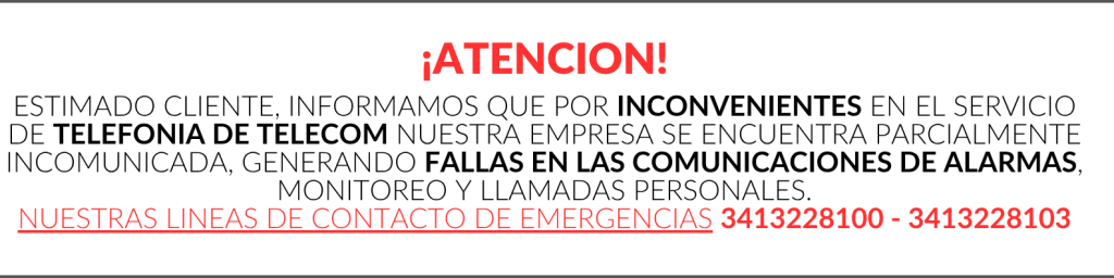 - Servicio de monitoreo de alarmas, con estación propia. Intrusión, asalto, incendio y emergencias.